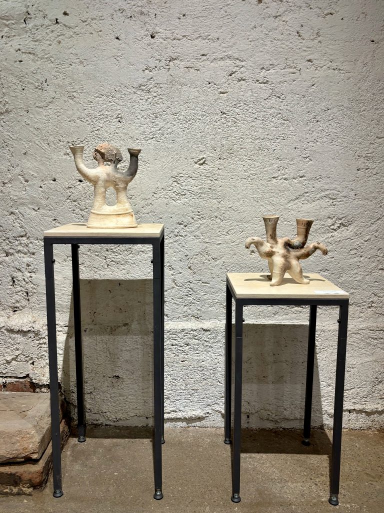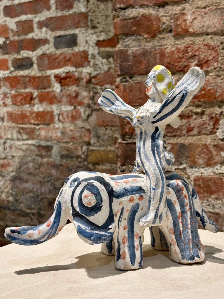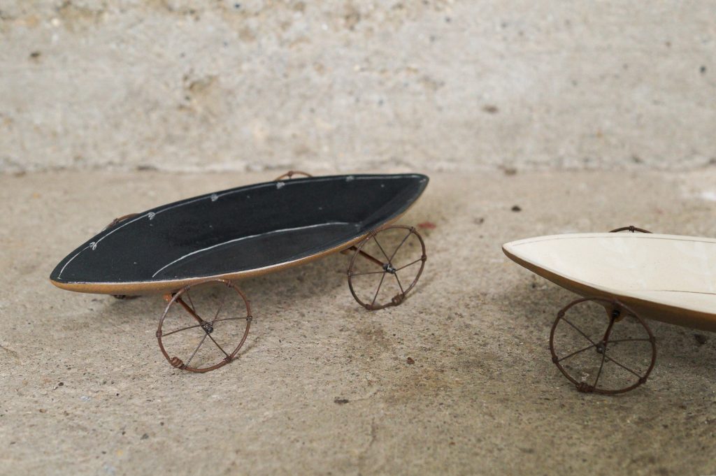 Neben Gebrauchsgeschirr entstehen in einer Kombination aus Keramik und Draht verspielte Objekte. Die Betrachtenden dürfen sich zum Spiel angeregt fühlen, oder sie lassen das Unaufgeregte, das Einfache auf sich wirken.