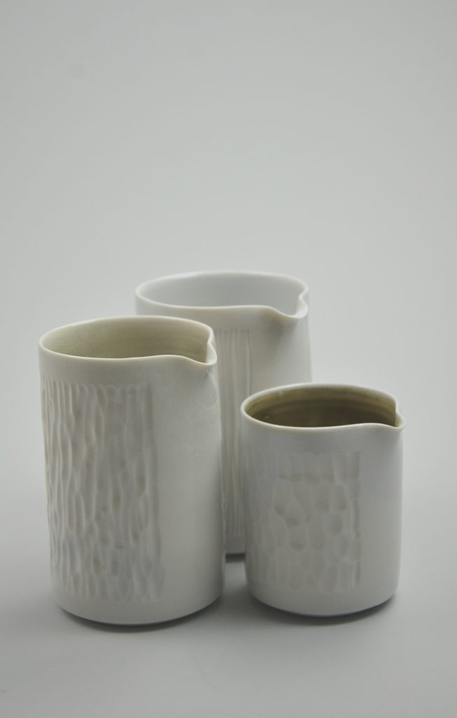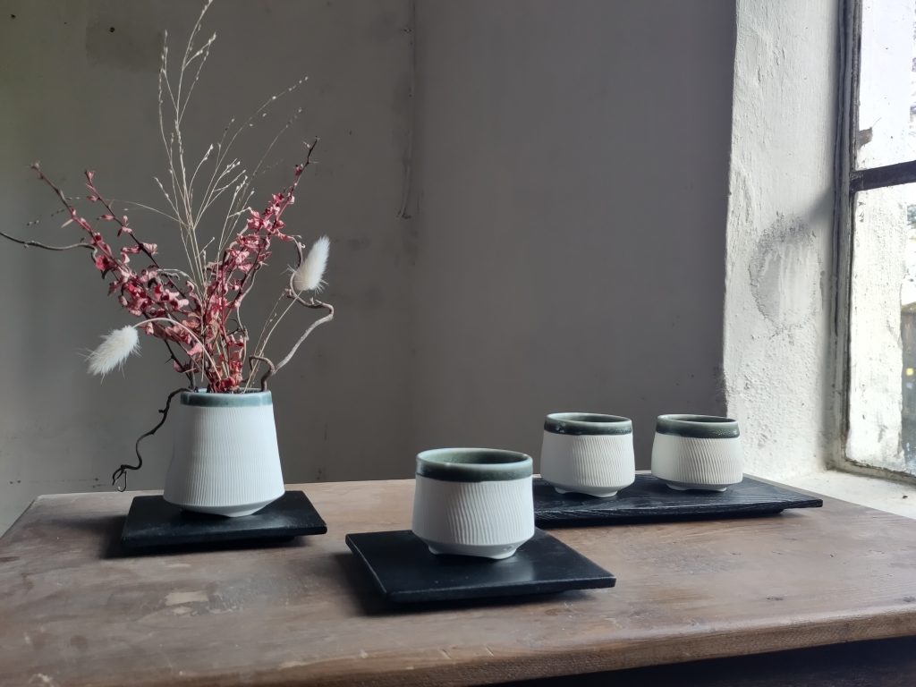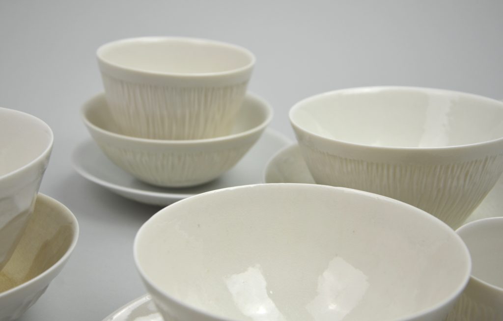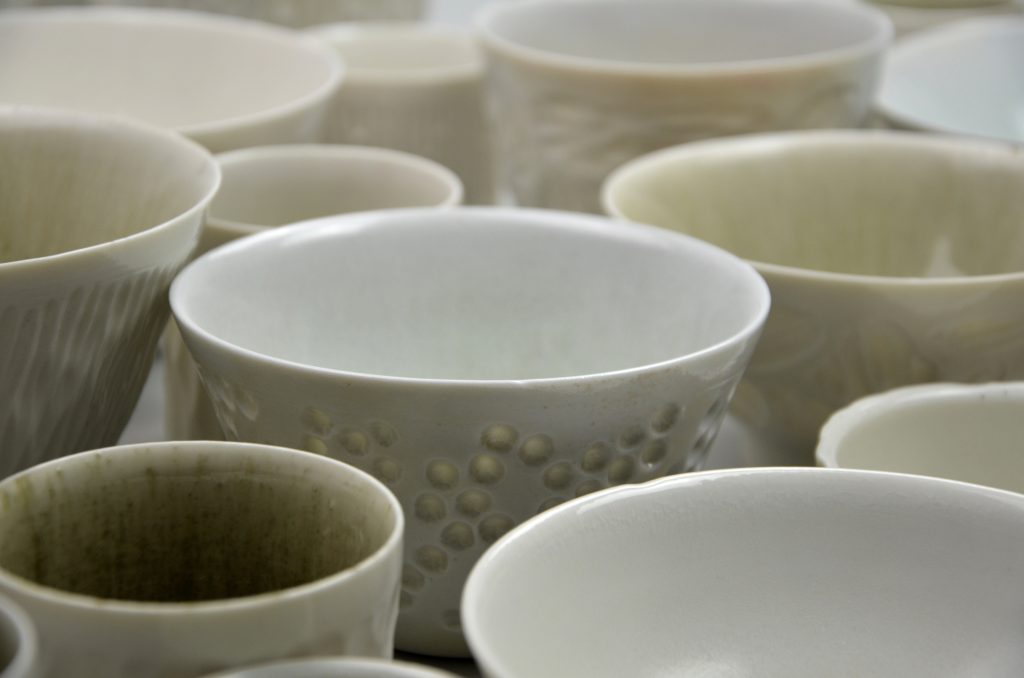 Claudia Karl ist Keramikmeisterin und Designerin – sie fertigt Geschirr aus Porzellan. Dabei stehen Kontraste wie hell und dunkel, glatt und strukturiert, sowie eine klare Formensprache im Vordergrund.