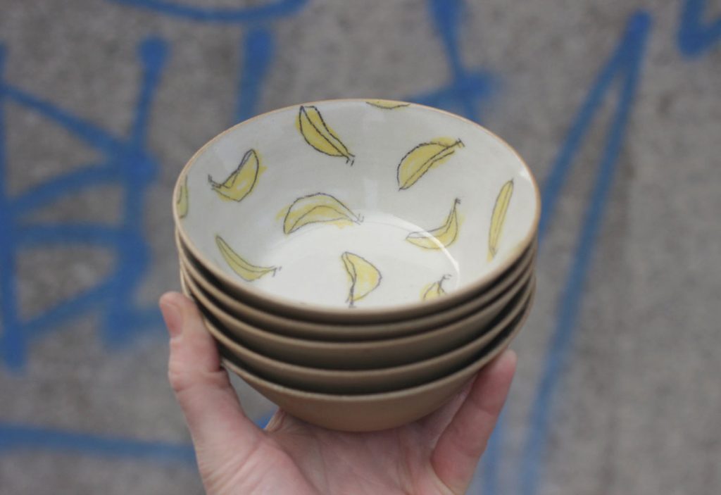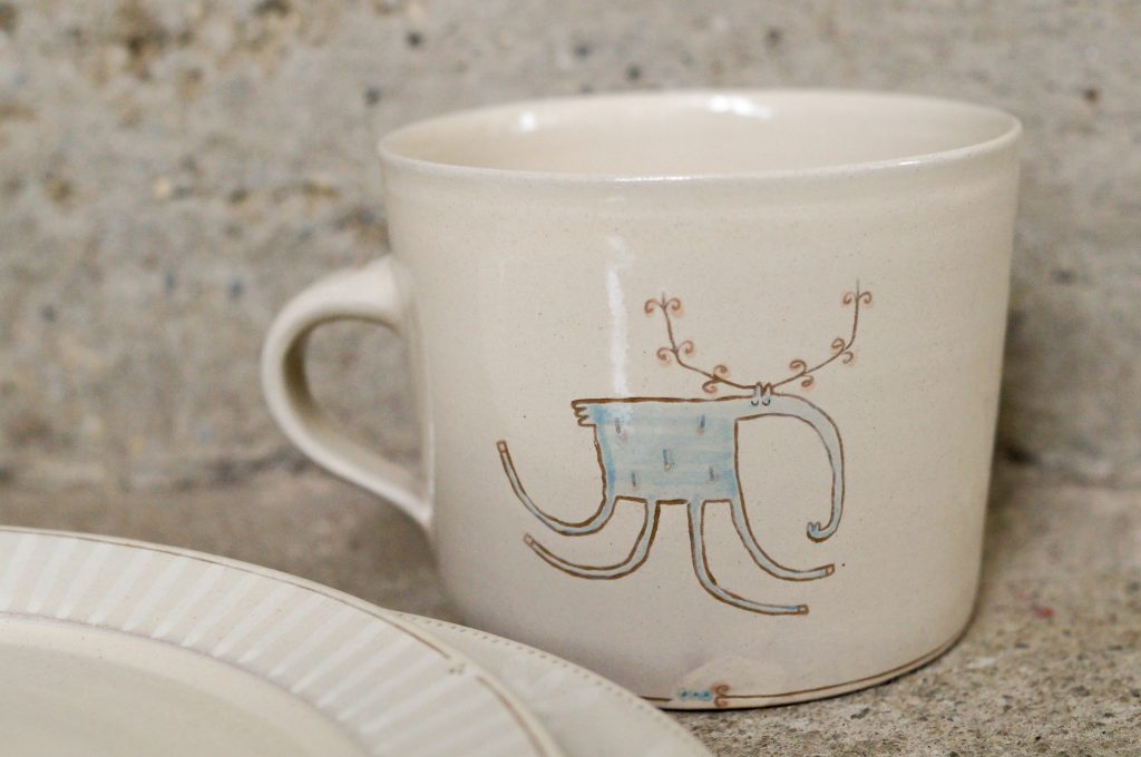 Geschirr für alle Tage und verspielte Objekte mit Gebrauchscharakter. Im Mittelpunkt ihrer Arbeit steht der Gebrauchsgegenstand. Auf den leichten Formen in sanften Farben finden sich stilisierte Tierwesen oder zarte Rankenmuster.